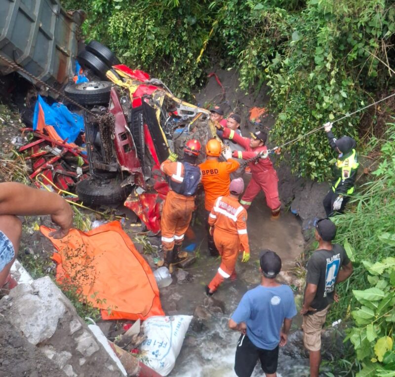 “Pengemudi sempat melakukan pengereman, namun tidak mampu menahan laju kendaraan. Truk kemudian melaju mundur. Di belakangnya terdapat truk bak kayu bernopol B 9728 TDC yang dikemudikan Santoso (45) warga Kabupaten Gunungkidul, DIY. Karena jarak terlalu dekat, truk bak kayu tidak sempat menghindar dan tertabrak dump truk yang mundur, lalu terperosok ke parit sedalam kurang lebih lima meter,” jelasnya.