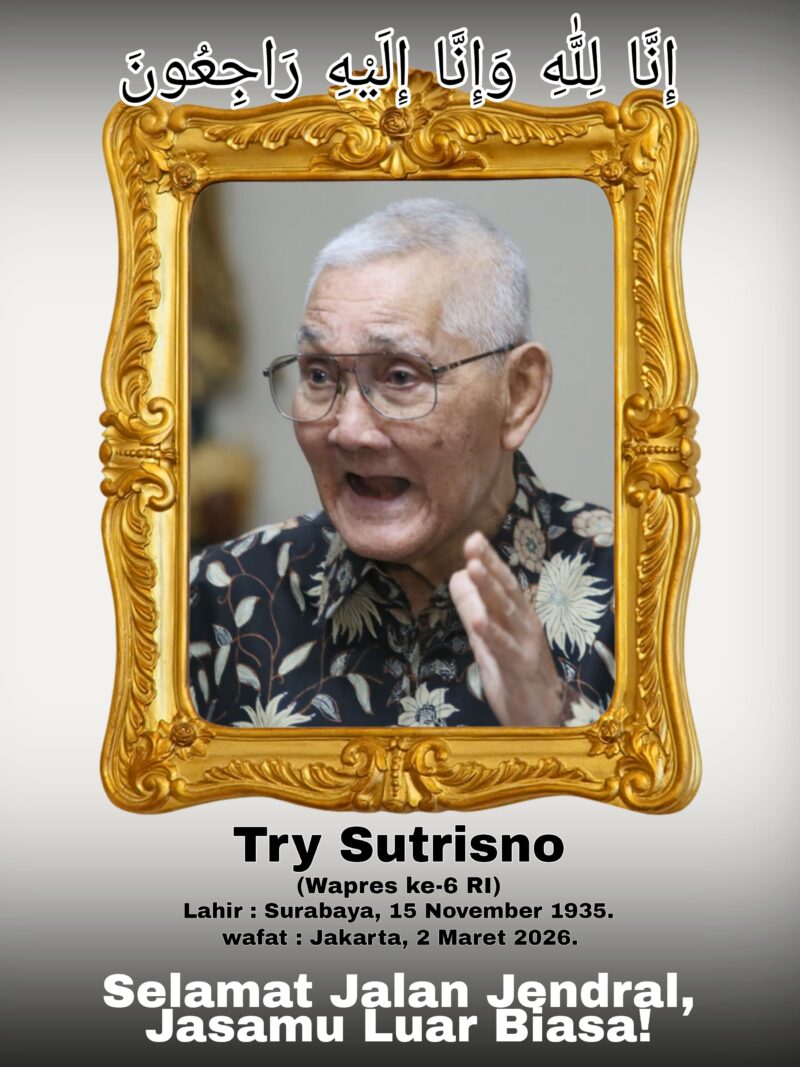 JAKARTA |MERDEKA1.COM – Innalillahi wa inna ilaihi roji’uun. Kabar duka menyelimuti keluarga besar almarhum Jenderal TNI (Purn) H. Try Sutrisno bin Subandi serta seluruh rakyat Indonesia.