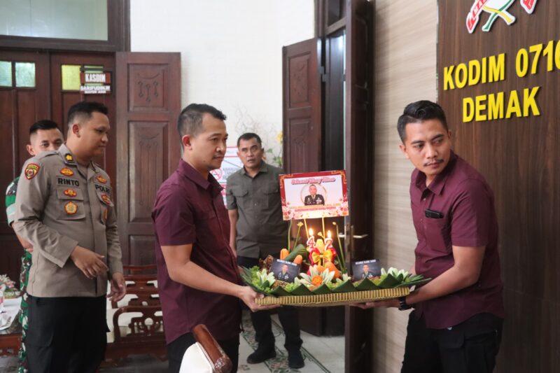 DEMAK | MERDEKA1.COM – Suasana hangat dan penuh kebersamaan mewarnai Markas Kodim 0716/Demak, Kamis (2/4/2026) siang. Kapolres Demak AKBP Samel bersama jajaran pejabat utama memberikan kejutan ulang tahun ke-42 kepada Dandim 0716/Demak Letkol Arm Dony Romansyah.