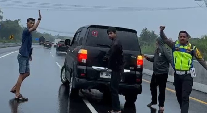 Kendaraan yang berhenti di tengah lajur tersebut sempat berpotensi membahayakan pengguna jalan lain, terlebih saat kondisi cuaca sedang hujan.
