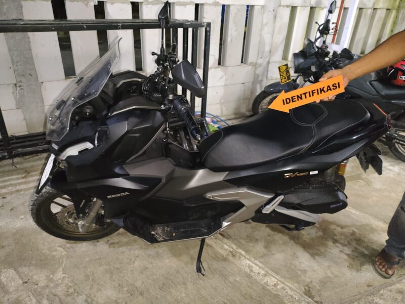 Dari tangan tersangka, polisi mengamankan dua sepeda motor, yakni Yamaha NMAX berpelat palsu R-3598-JAC dan Honda ADV G-4056-CDF. Petugas juga menemukan satu unit laptop dalam tas serta satu unit proyektor yang disembunyikan di dalam jok motor.